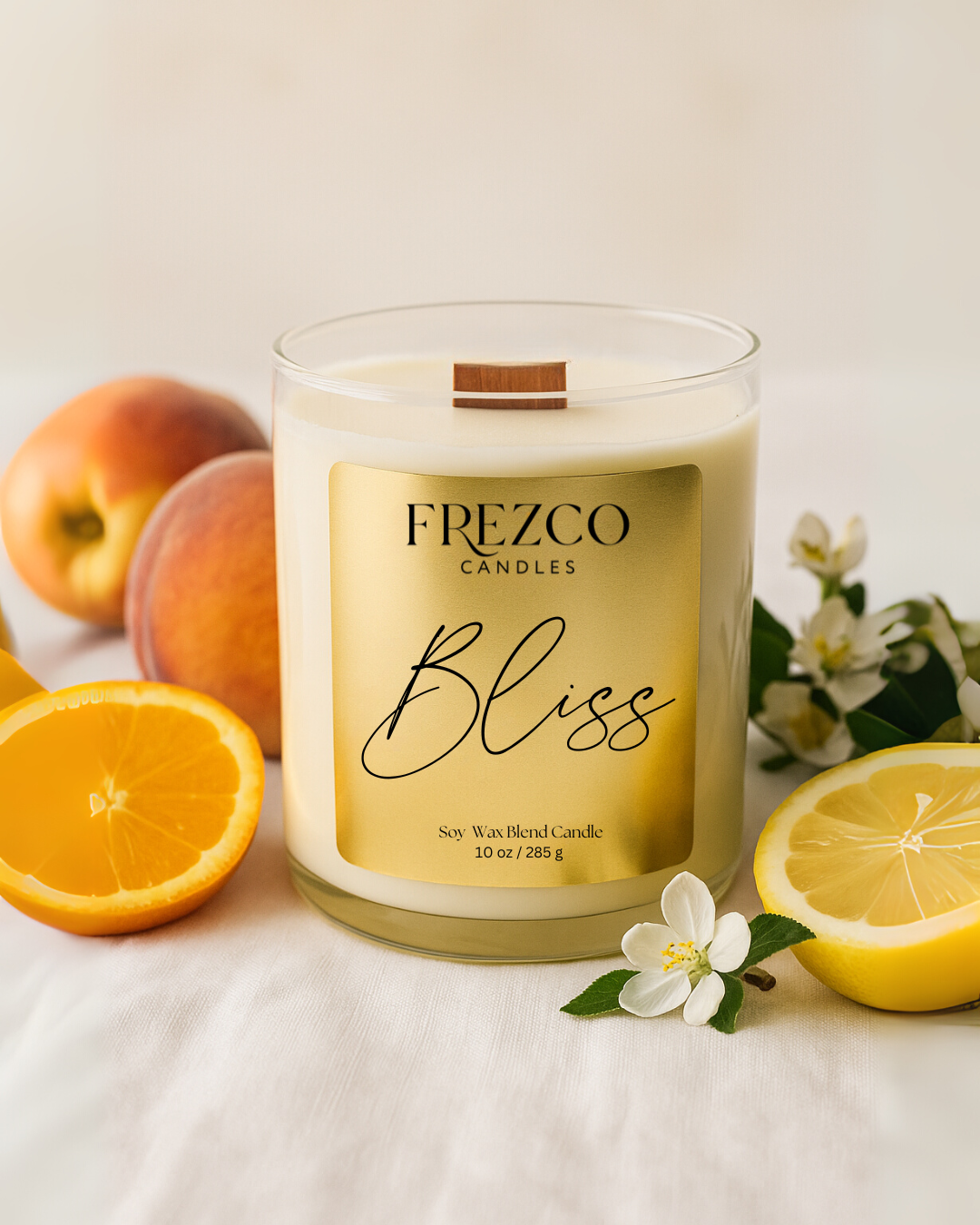 Bliss 10oz Luxury Soy Candle-Peach Blossom, Peach & Vanilla | Wood Wick, Clean Burning Elegant Home Fragrance